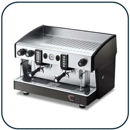Electronic espresso coffee machine with programmable volumetric dosing.